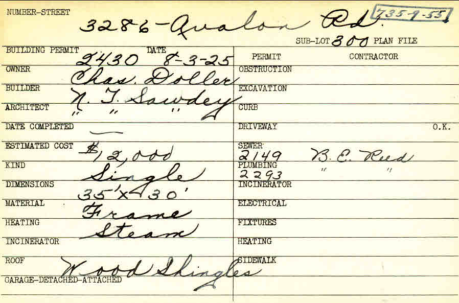3286 Avalon Road Shaker Heights, OH 44120 PARCEL ID: 735-09-055 Building Permit Date: 08-03-1925 Plan File Number: 0 Neighborhood: Fernway Owner: Doller, Charles Builder: Sawdey, N. T. Architect: Sawdey, N. T. Estimated Cost: 12000 Kind: Single, Single Residence or Dwelling Material: Frame Heating: Steam Roof: Wood Shingle Card Available: yes  |