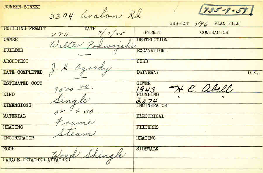 3304 Avalon Road Shaker Heights, OH 44120 PARCEL ID: 735-09-059 Building Permit Date: 04-07-1925 Plan File Number: 0 Neighborhood: Fernway Owner: Podwojski, Walter Architect: Ogrody, J. H. Estimated Cost: 9500 Kind: Single, Single Residence or Dwelling Material: Frame Heating: Steam Roof: Wood Shingle Card Available: yes  |