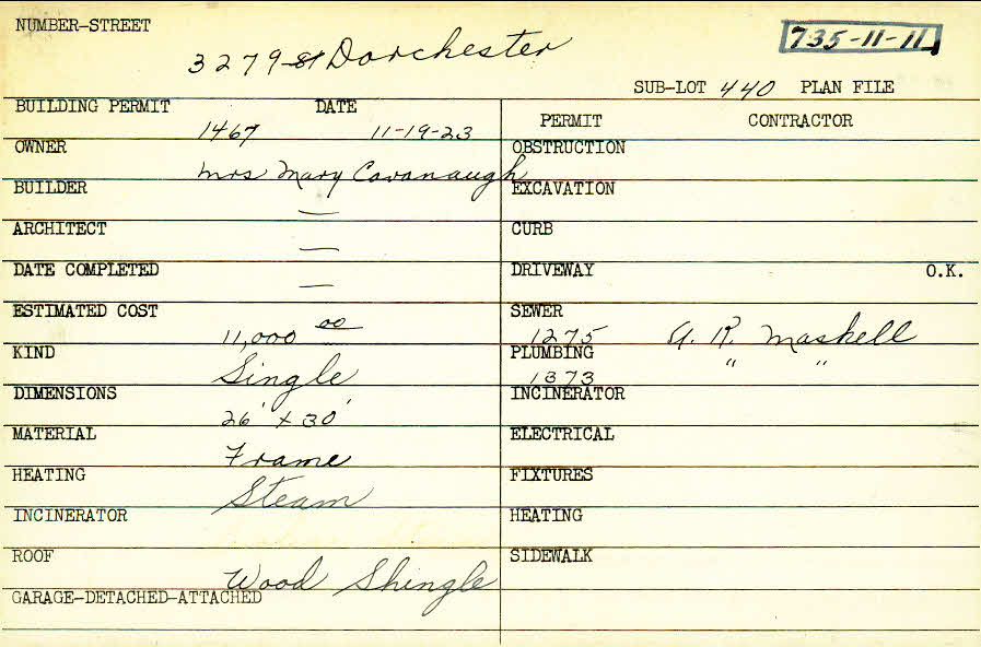 3279 Dorchester Road Shaker Heights, OH 44120 PARCEL ID: 735-11-011 Building Permit Date: 11-19-1923 Plan File Number: 839 all scanned Microfilm Roll: Roll011 Neighborhood: Fernway Owner: Cavanaugh, Mrs. Mary Estimated Cost: 11000 Kind: Single, Single Residence or Dwelling Material: Frame Heating: Steam Roof: Wood Shingle |