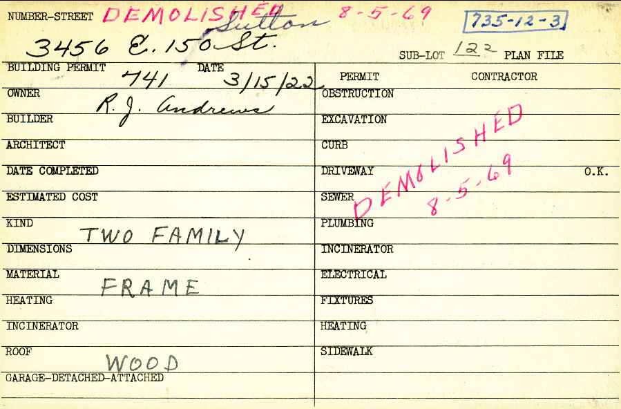 3456 Sutton Road Shaker Heights, OH 44120 PARCEL ID: 735-12-003 Building Permit Date: 03-15-1922 Plan File Number: 1088 all scanned Microfilm Roll: Roll013 Neighborhood: Moreland Owner: Andrews, R. J. Kind: Duplex or Two-Family Material: Frame Roof: Wood |