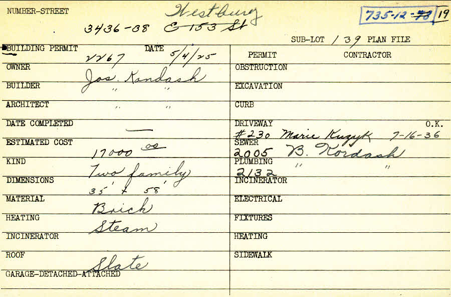 3436 Westbury Road Shaker Heights, OH 44120 PARCEL ID: 735-12-019 Building Permit Date: 05-04-1925 Plan File Number: 0 Neighborhood: Moreland Owner: Kondash, Joseph Builder: Kondash, Joseph Architect: Kondash, Joseph Estimated Cost: 17000 Kind: Duplex or Two-Family Material: Brick Heating: Steam Roof: Slate |