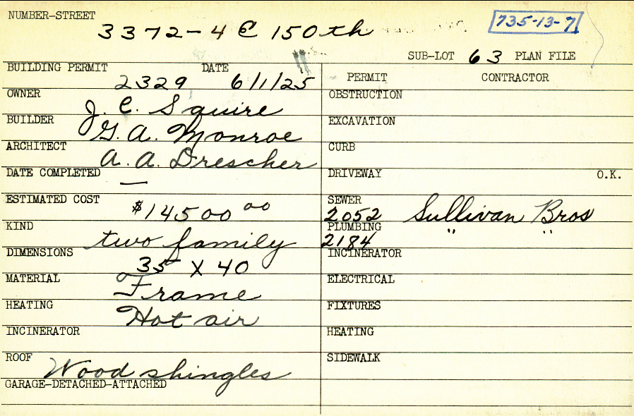 3372 Sutton Road Shaker Heights, OH 44120 PARCEL ID: 735-13-007 Building Permit Date: 06-01-1925 Plan File Number: 0 Neighborhood: Moreland Owner: Squire, J. C. Builder: Monroe, G. A. Architect: Drescher, A. A. Estimated Cost: 14500 Kind: Duplex or Two-Family Material: Frame Heating: Hot Air Roof: Wood Shingle Card Available: yes |