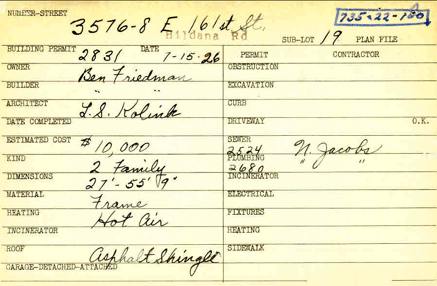 3578 Hildana Road Shaker Heights, OH 44120 PARCEL ID: 735-22-100 Building Permit Date: 07-15-1926 Plan File Number: 7045 Microfilm Roll: Roll#90 Neighborhood: Moreland Owner: Friedman, Ben Builder: Friedman, Ben Architect: Kolink, L. S. Estimated Cost: 10000 Kind: Duplex or Two-Family Material: Frame Heating: Hot Air Roof: Asphalt Shingles |