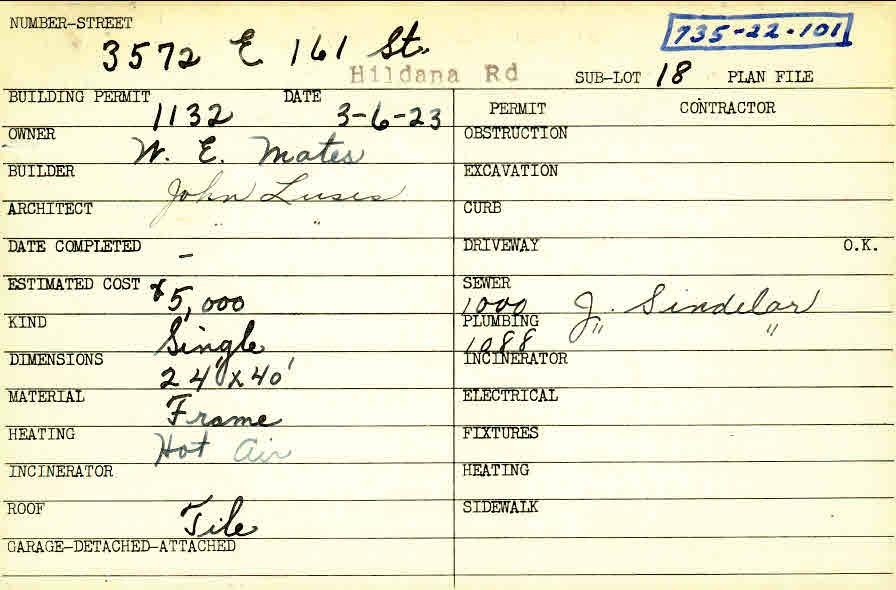 3572 Hildana Road Shaker Heights, OH 44120 PARCEL ID: 735-22-101 Building Permit Date: 03-06-1923 Plan File Number: 0 Neighborhood: Moreland Owner: Mates, W. E. Builder: Lusis, John Architect: Lusis, John Estimated Cost: 5000 Kind: Single, Single Residence or Dwelling Material: Frame Heating: Hot Air Roof: Tile Card Available: yes |
