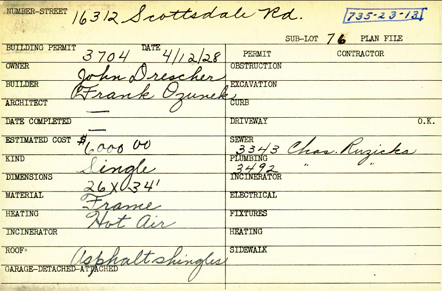 16312 Scottsdale Boulevard Shaker Heights, OH 44120 PARCEL ID: 735-23-013 Building Permit Date: 04-12-1928 Plan File Number: 0 Neighborhood: Moreland Owner: Drescher, John Builder: Ozunek, Frank Estimated Cost: 6000 Kind: Single, Single Residence or Dwelling Material: Frame Heating: Hot Air Roof: Asphalt Shingles Card Available: yes |