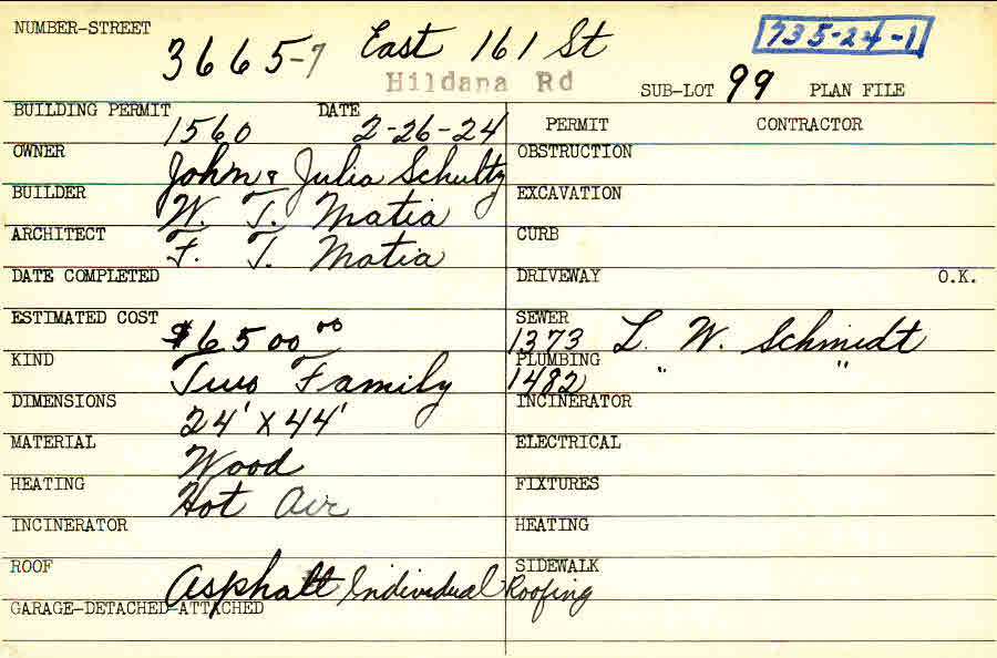 3665 Hildana Road Shaker Heights, OH 44120 PARCEL ID: 735-24-001 Building Permit Date: 02-26-1924 Plan File Number: 0 Neighborhood: Moreland Owner: Schultz, John and Julia Builder: Matia, W. T. Architect: Matia, F. T. Estimated Cost: 6500 Kind: Duplex or Two-Family Material: Wood Heating: Hot Air Roof: Asphalt |