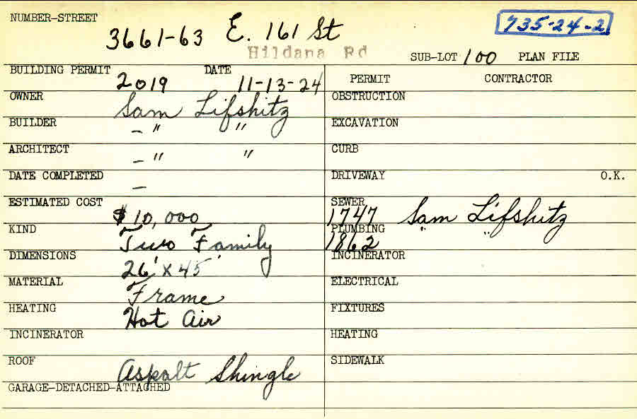 3661 Hildana Road Shaker Heights, OH 44120 PARCEL ID: 735-24-002 Building Permit Date: 11-13-1924 Plan File Number: 5342 Microfilm Roll: Roll#73 Neighborhood: Moreland Owner: Lifshitz, Sam Builder: Lifshitz, Sam Architect: Lifshitz, Sam Estimated Cost: 10000 Kind: Duplex or Two-Family Material: Frame Heating: Hot Air Roof: Asphalt Shingles |