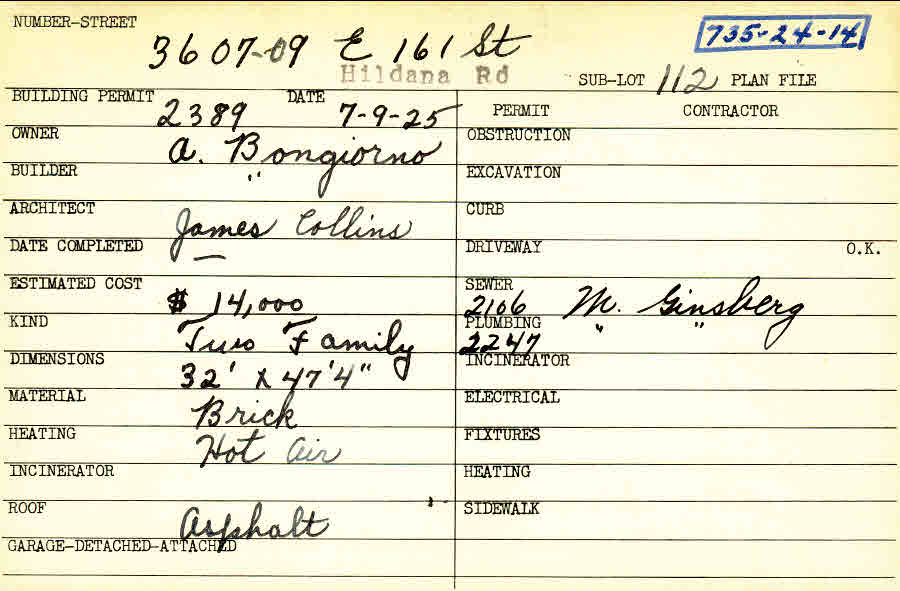 3607 Hildana Road Shaker Heights, OH 44120 PARCEL ID: 735-24-014 Building Permit Date: 07-09-1925 Plan File Number: 0 Neighborhood: Moreland Owner: Bongiorno, A. Builder: Bongiorno, A. Architect: Collins, James Estimated Cost: 14000 Kind: Duplex or Two-Family Material: Brick Heating: Hot Air Roof: Asphalt |