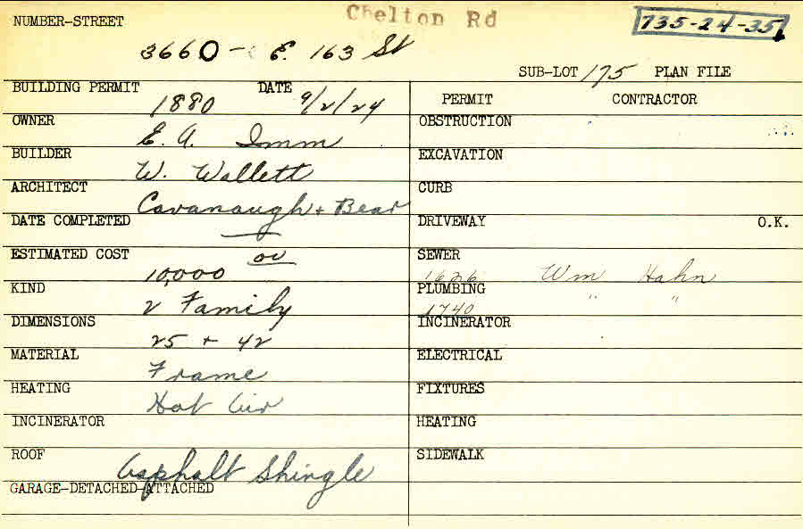 3660 Chelton Road Shaker Heights, OH 44120 PARCEL ID: 735-24-035 Building Permit Date: 09-02-1924 Plan File Number: 0 Neighborhood: Moreland Owner: Imm, E. A. Builder: Wallett, W. Architect: Cavanaugh and Bear Estimated Cost: 10000 Kind: Duplex or Two-Family Material: Frame Heating: Hot Air Roof: Asphalt Shingles |