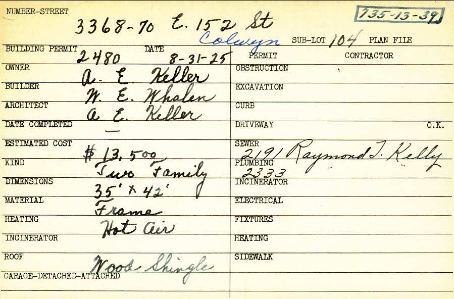 3368 Colwyn Road Shaker Heights, OH 44120 PARCEL ID: 735-13-039 Building Permit Date: 08-31-1925 Plan File Number: 0 Neighborhood: Moreland Owner: Keller, A. E. Builder: Whalen, W. E. Architect: Keller, Arthur Emil Estimated Cost: 13500 Kind: Duplex or Two-Family Material: Frame Heating: Hot Air Roof: Wood Shingle |